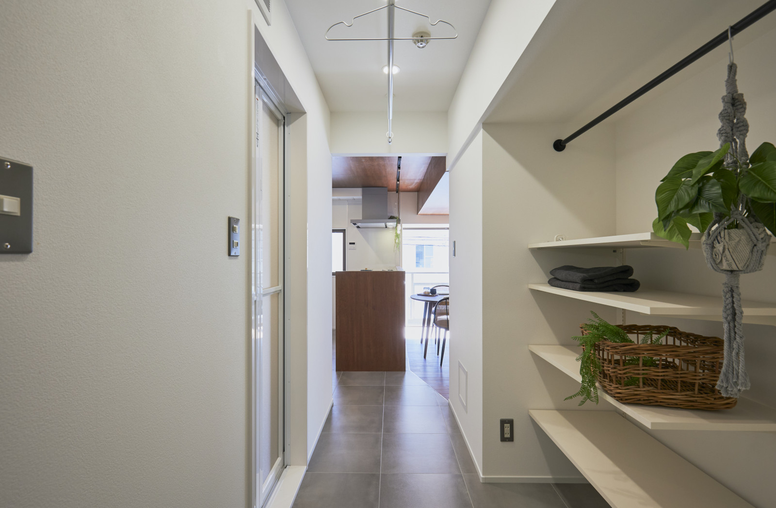 帰宅後の荷物や日用品も、つい元の場所に戻したくなるような動線とレイアウトで、散らかりにくい暮らしを目指しました。