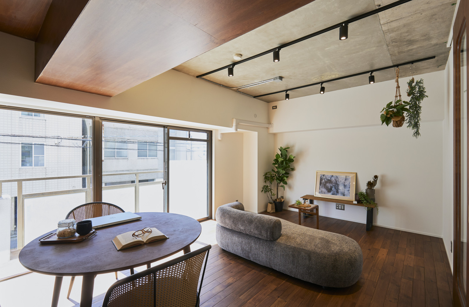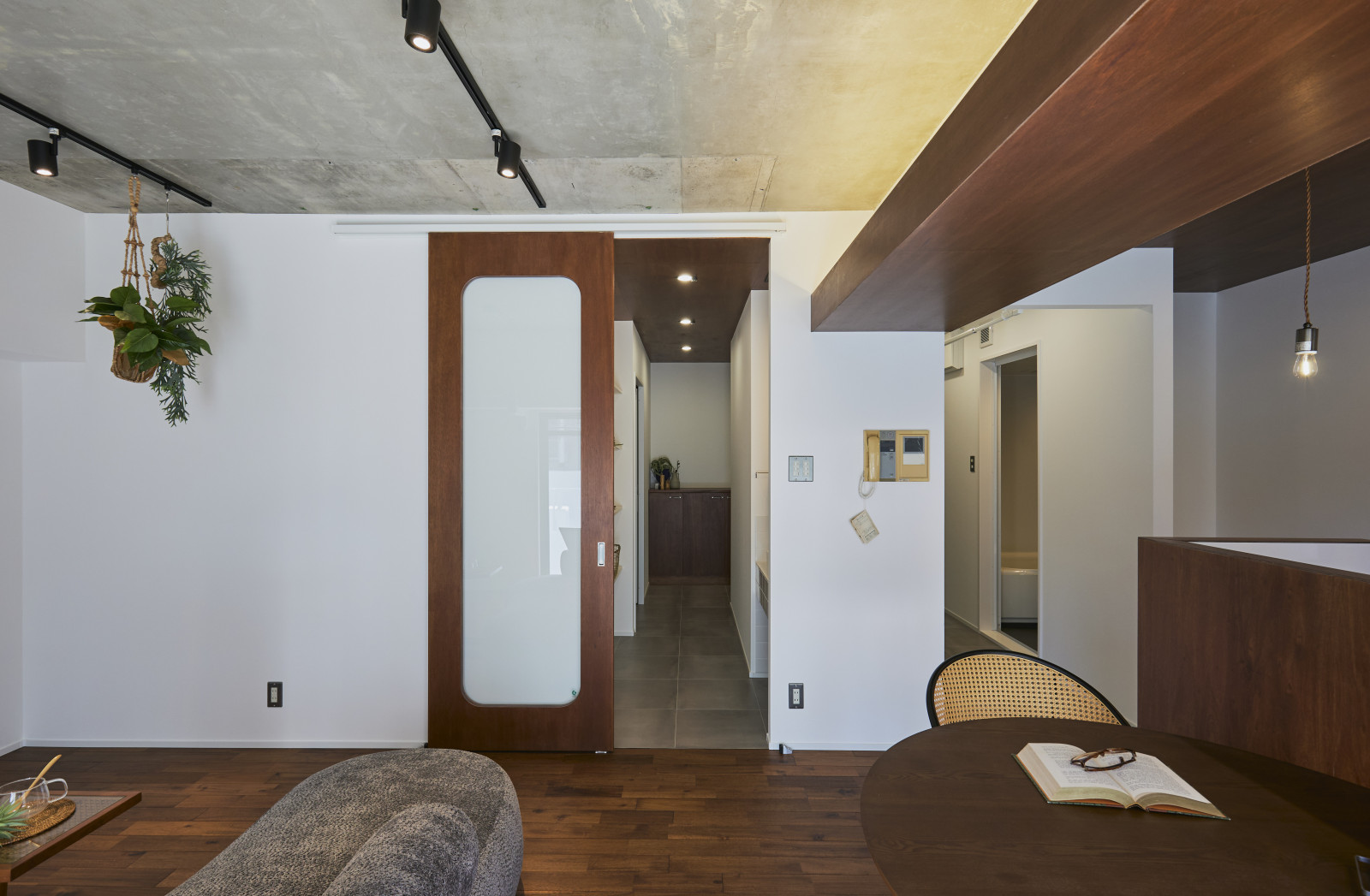 木材 × コンクリートの上質なコントラストが融合した、温かみのあるミニマル・モダンな住空間