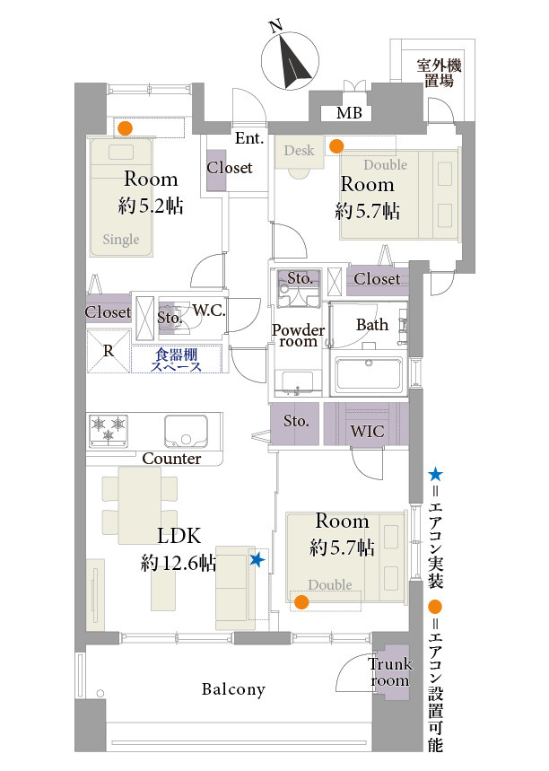 - 3LDK+3Closet+WIC