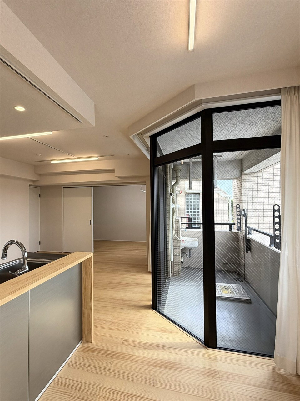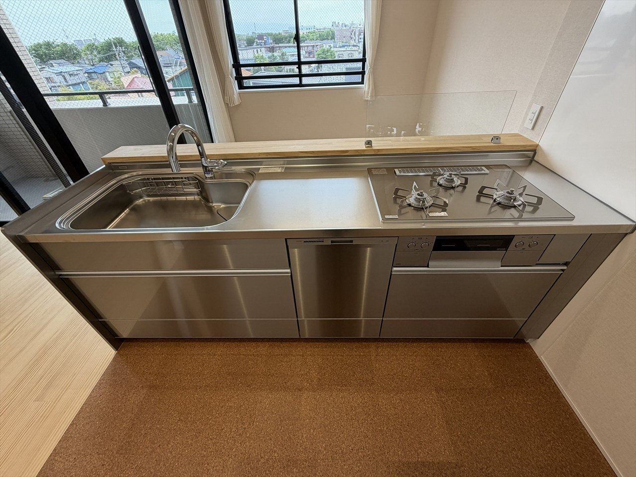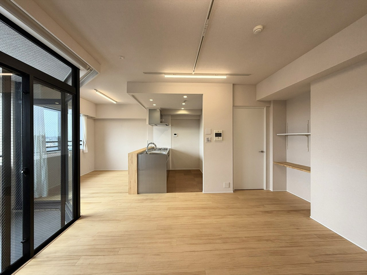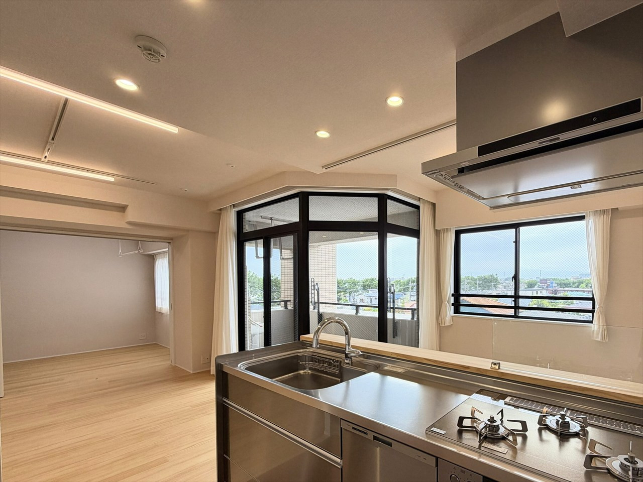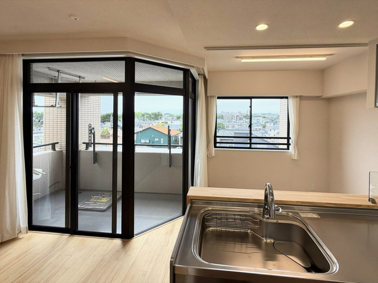 最上階の開放感と上質なフルリノベが魅力の3LDK。無垢床やステンレスキッチンなど素材にこだわり、西向きバルコニーで夕景も楽しめる住まいです。
