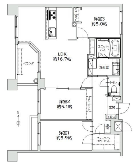 - 間取り: 3 LDK