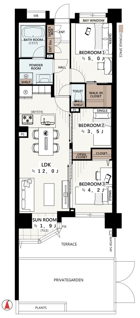 南向き!テラス&プライベートガーデン付き住戸