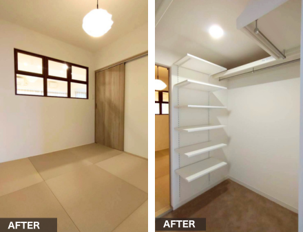 洋室のクローゼットと和室の押入れをつなぎ、使い勝手の良いWICへと再構成しました。